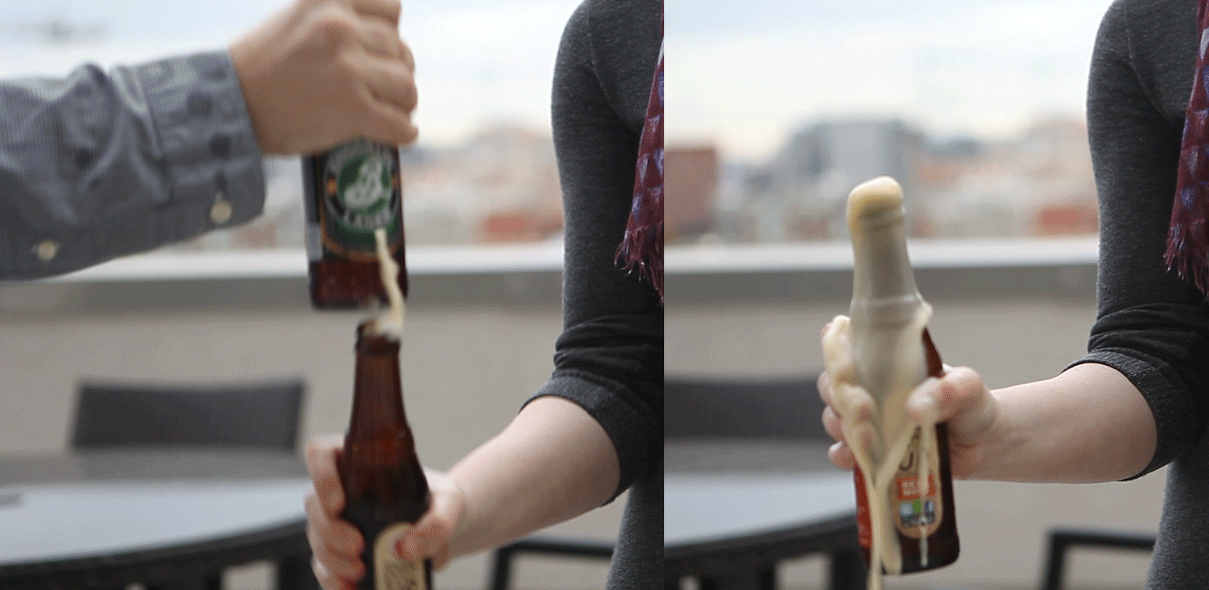 Een bekende flauwe grap in de kroeg: tik met de onderkant van je bierflesje op de bovenkant van het bierflesje van je vriend en het schuim spuit er keihard uit! Maar hoe kan dit? Wetenschappers hebben het uitgebreid onderzocht.