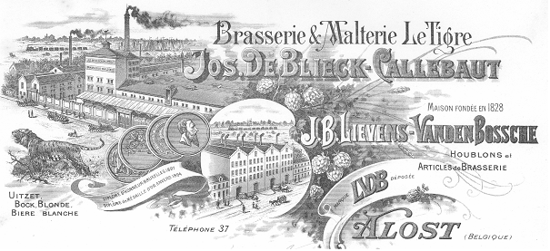 De aan de Hertshage in 1828 door J.B. Lievens – Van Den Bossche opgerichte hophandel werd rond 1895 – 1897 omgevormd tot Brouwerij en Mouterij De Tijger door Joseph De Blieck – Emilia Maria Callebaut.