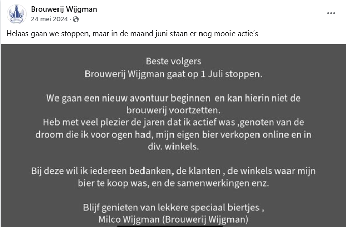 Brouwerij Wijgman gestopt in 2024