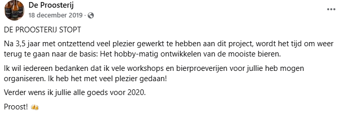 Op 18 december plaatste de brouwerij een bericht op Facebook dat zij besloten te stoppen met de brouwerij.