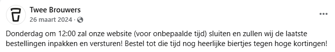 Op 26 maart 2024 plaatste de brouwerij een bericht op Instagram dat zij besloten te stoppen met de brouwerij.