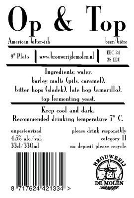Op & Top heeft een bittere smaak waarbij de smaak van citrus een duidelijke rol speelt. Smaakindicatie: Moutig, kruiden, en citrusvruchten.