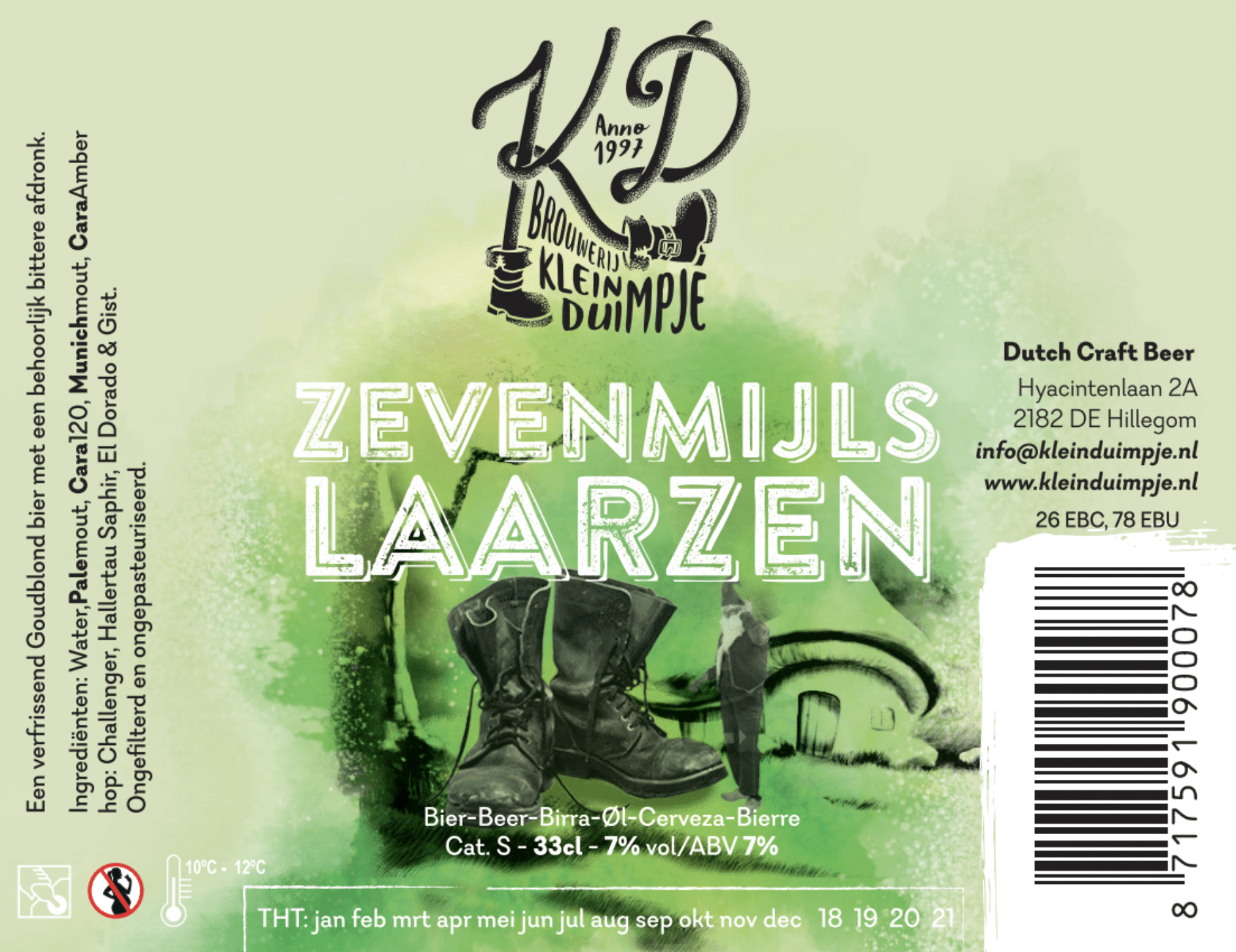 Zevenmijlslaarzen is een Blond met 7,0% alcohol. Zevenmijlslaarzen wordt gebrouwen door Brouwerij Klein Duimpje in Hillegom.