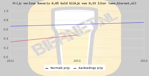 In een blikje 33cl zit in totaal 0,33 liter. Op een blikje 33cl Bavaria 0.0% Gold zit €0,15 statiegeld. De prijzen op deze pagina zijn allemaal zonder statiegeld.