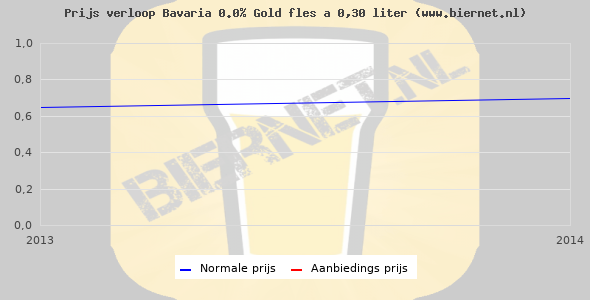 De gemiddelde prijs van een fles á 0,30 liter van Bavaria 0.0% Gold is niet bekend. De gemiddelde prijs van Bavaria 0.0% Gold in de winkel is niet bekend.