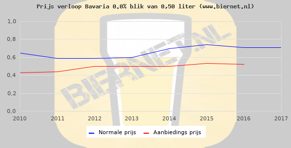 De gemiddelde prijs van een blik van 0,50 liter van Bavaria 0.0% is niet bekend. De gemiddelde prijs van Bavaria 0.0% in de winkel is niet bekend.