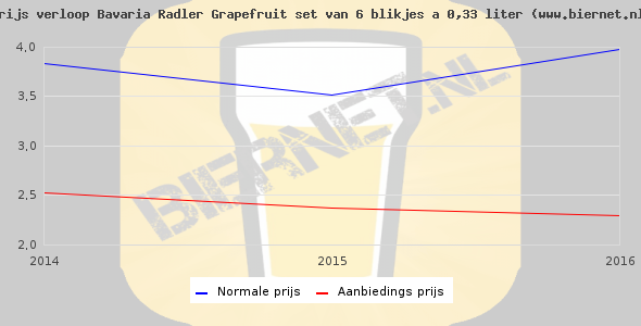 De gemiddelde prijs van een set van 6 blikjes 0,33 liter van Bavaria Radler Grapefruit is niet bekend. De gemiddelde prijs van Bavaria Radler Grapefruit in de winkel is niet bekend.