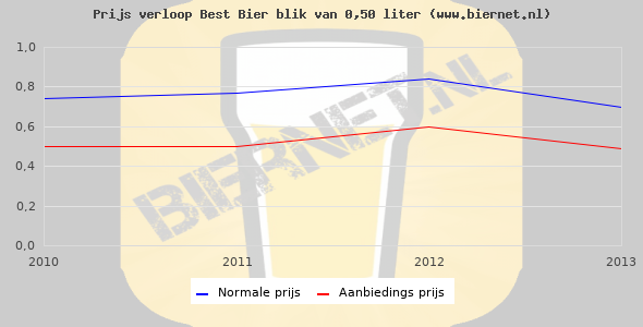 De gemiddelde prijs van een blik van 0,50 liter van Best Bier is €0,85 (€1,7 per liter). De gemiddelde prijs van Best Bier in de winkel is €1,34 per liter.