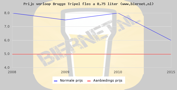 De gemiddelde prijs van een fles á 0,75 liter van Brugge Tripel is niet bekend. De gemiddelde prijs van Brugge Tripel in de winkel is niet bekend.