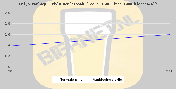 De gemiddelde prijs van een fles á 0,30 liter van Budels Herfstbock is €2,15 (€7,17 per liter). De gemiddelde prijs van Budels Herfstbock in de winkel is €7,17 per liter.