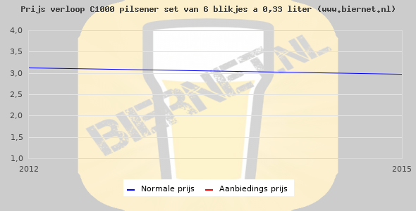 De gemiddelde prijs van een set van 6 blikjes 0,33 liter van C1000 pilsener is niet bekend. De gemiddelde prijs van C1000 pilsener in de winkel is niet bekend.