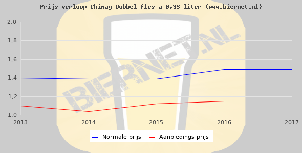 De gemiddelde prijs van een fles á 0,33 liter van Chimay Rood is €2,26 (€6,85 per liter). De gemiddelde prijs van Chimay Rood in de winkel is €7,15 per liter.