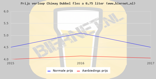 De gemiddelde prijs van een fles á 0,75 liter van Chimay Rood is €5,95 (€7,93 per liter). De gemiddelde prijs van Chimay Rood in de winkel is €7,15 per liter.