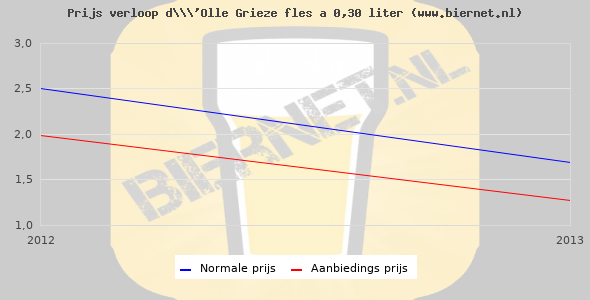 De gemiddelde prijs van een fles á 0,30 liter van d'Olle Grieze 2013 is niet bekend. De gemiddelde prijs van d'Olle Grieze 2013 in de winkel is niet bekend.
