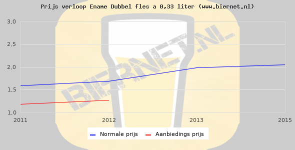 De gemiddelde prijs van een fles á 0,33 liter van Ename Dubbel is €2,4 (€7,27 per liter). De gemiddelde prijs van Ename Dubbel in de winkel is €7,42 per liter.