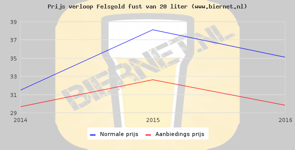 De gemiddelde prijs van een fust van 20 liter van Felsgold is niet bekend. De gemiddelde prijs van Felsgold in de winkel is niet bekend.