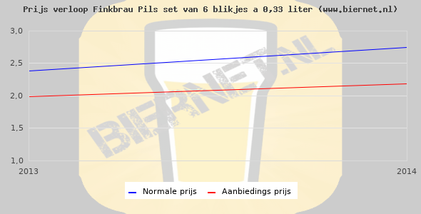 De gemiddelde prijs van een set van 6 blikjes 0,33 liter van Finkbrau Pils is niet bekend. De gemiddelde prijs van Finkbrau Pils in de winkel is niet bekend.