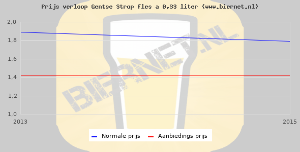De gemiddelde prijs van een fles á 0,33 liter van Gentse Strop is €2,46 (€7,45 per liter). De gemiddelde prijs van Gentse Strop in de winkel is €7,00 per liter.
