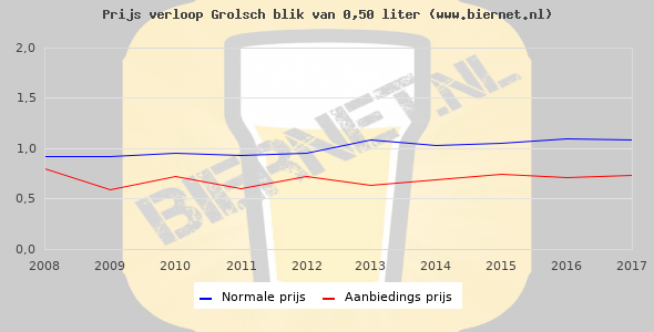 De gemiddelde prijs van een blik van 0,50 liter van Grolsch Premium Pilsner is €1,41 (€2,82 per liter). De gemiddelde prijs van Grolsch Premium Pilsner in de winkel is €2,80 per liter.