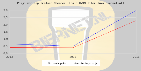 De gemiddelde prijs van een fles á 0,33 liter van Grolsch Stender is niet bekend. De gemiddelde prijs van Grolsch Stender in de winkel is niet bekend.