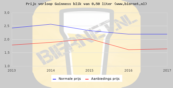De gemiddelde prijs van een blik van 0,50 liter van Guinness Draught is €2,93 (€5,86 per liter). De gemiddelde prijs van Guinness Draught in de winkel is €5,56 per liter.