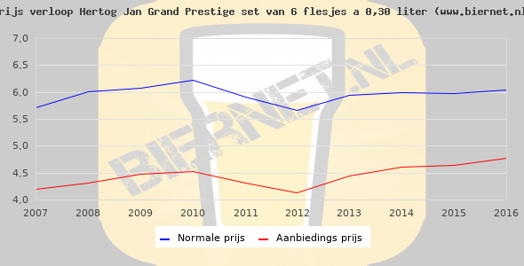 Hieronder staan de standaard prijzen van een Hertog Jan Grand Prestige set van 6 flesjes á 0,30 liter. Op dit moment zijn er 14 aanbiedingen van Hertog Jan Grand Prestige.