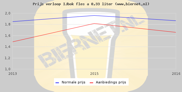 Hieronder staan de standaard prijzen van een IJbok fles á 0,33 liter. Op dit moment is er 1 aanbieding van IJbok.