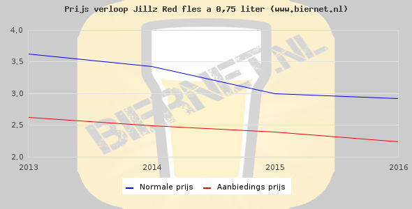 De gemiddelde prijs van een fles á 0,75 liter van Jillz Red is niet bekend. De gemiddelde prijs van Jillz Red in de winkel is niet bekend.