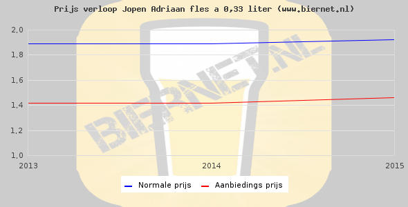 De gemiddelde prijs van een fles á 0,33 liter van Jopen Adriaan Wit is €2,55 (€7,73 per liter). De gemiddelde prijs van Jopen Adriaan Wit in de winkel is €7,30 per liter.