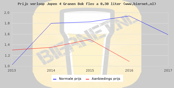 De gemiddelde prijs van een fles á 0,30 liter van Jopen Bokbier is niet bekend. De gemiddelde prijs van Jopen Bokbier in de winkel is niet bekend.