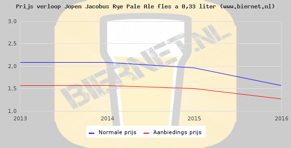 De gemiddelde prijs van een fles á 0,33 liter van Jopen Jacobus Rye Pale Ale is niet bekend. De gemiddelde prijs van Jopen Jacobus Rye Pale Ale in de winkel is niet bekend.