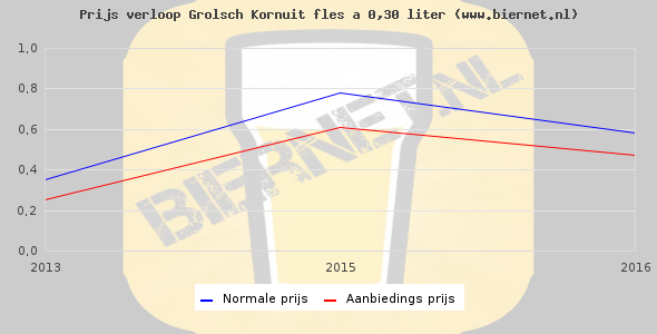 De gemiddelde prijs van een fles á 0,30 liter van Kornuit Pils is niet bekend. De gemiddelde prijs van Kornuit Pils in de winkel is niet bekend.