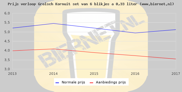 De gemiddelde prijs van een set van 6 blikjes 0,33 liter van Kornuit Pils is niet bekend. De gemiddelde prijs van Kornuit Pils in de winkel is niet bekend.