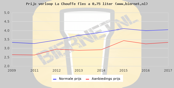 De gemiddelde prijs van een fles á 0,75 liter van La Chouffe is €5,4 (€7,2 per liter). De gemiddelde prijs van La Chouffe in de winkel is €7,82 per liter.
