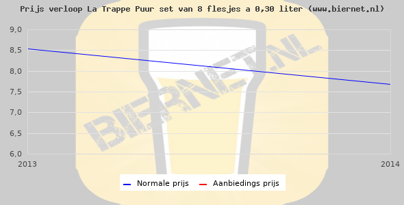 De gemiddelde prijs van een set van 8 flesjes á 0,30 liter van La Trappe Puur is niet bekend. De gemiddelde prijs van La Trappe Puur in de winkel is niet bekend.