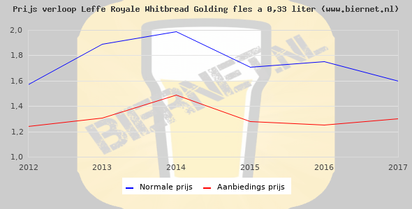 De gemiddelde prijs van een fles á 0,33 liter van Leffe Royale Whitbread Golding is niet bekend. De gemiddelde prijs van Leffe Royale Whitbread Golding in de winkel is niet bekend.