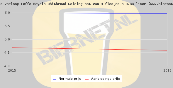 De gemiddelde prijs van een set van 4 flesjes á 0,33 liter van Leffe Royale Whitbread Golding is niet bekend. De gemiddelde prijs van Leffe Royale Whitbread Golding in de winkel is niet bekend.