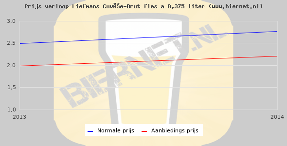 De gemiddelde prijs van een fles á 0,375 liter van Liefmans Cuvée-Brut is niet bekend. De gemiddelde prijs van Liefmans Cuvée-Brut in de winkel is niet bekend.