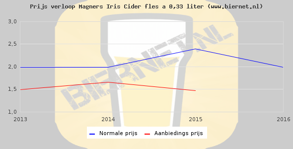 De gemiddelde prijs van een fles á 0,33 liter van Magners Irish Cider is €2,08 (€6,3 per liter). De gemiddelde prijs van Magners Irish Cider in de winkel is €5,88 per liter.