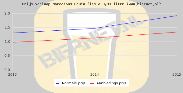 De gemiddelde prijs van een fles á 0,33 liter van Maredsous Bruin is €2,6 (€7,88 per liter). De gemiddelde prijs van Maredsous Bruin in de winkel is €8,06 per liter.