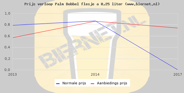 De gemiddelde prijs van een flesje á 0,25 liter van Palm Dobbel is niet bekend. De gemiddelde prijs van Palm Dobbel in de winkel is niet bekend.