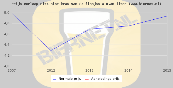 De gemiddelde prijs van een krat van 24 flesjes á 0,30 liter van Pitt bier is €5,99 (€0,83 per liter). De gemiddelde prijs van Pitt bier in de winkel is €1,14 per liter.