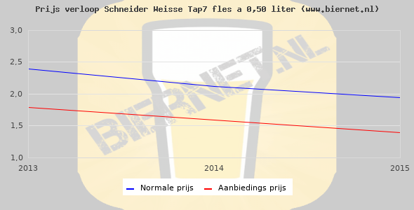 De gemiddelde prijs van een fles á 0,50 liter van Schneider Weisse Original Tap7 is €2,36 (€4,72 per liter). De gemiddelde prijs van Schneider Weisse Original Tap7 in de winkel is €4,96 per liter.