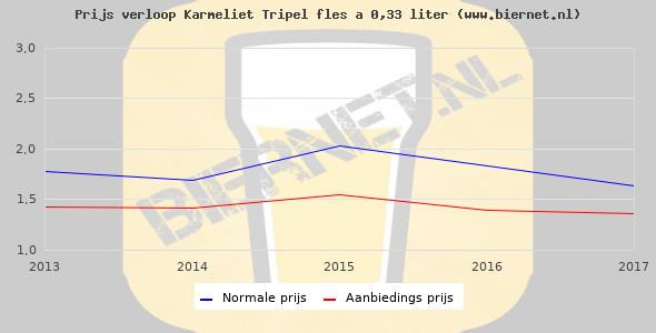 De gemiddelde prijs van een fles á 0,33 liter van Tripel Karmeliet is €2,33 (€7,06 per liter). De gemiddelde prijs van Tripel Karmeliet in de winkel is €6,80 per liter.