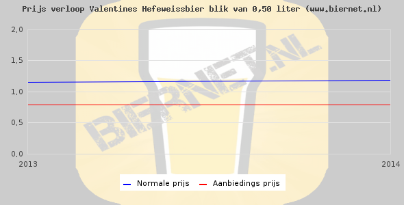 De gemiddelde prijs van een blik van 0,50 liter van Valentines Hefeweissbier is niet bekend. De gemiddelde prijs van Valentines Hefeweissbier in de winkel is niet bekend.