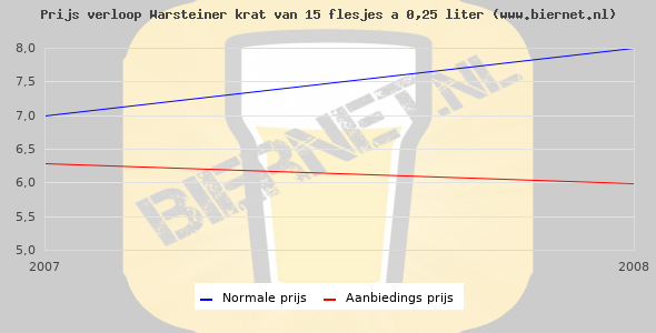 De gemiddelde prijs van een krat van 15 flesjes á 0,25 liter van Warsteiner Premium Pilsener is niet bekend. De gemiddelde prijs van Warsteiner Premium Pilsener in de winkel is niet bekend.