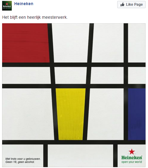 Heineken weet vaak een originele post te maken voor social media. Deze Facebook post getuigt daar ook van: 'Het blijft een heerlijk meesterwerk.' Meer reclames van Heineken Pilsener