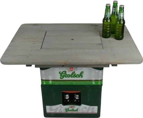 Dit bierkrat is uitgerust met twee wieltjes waarmee je snel van de ene naar de andere locatie kunt rijden.
