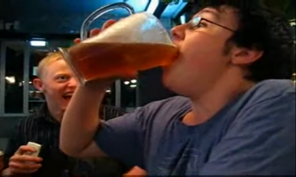 Kun jij een biertje atten? Vast wel, maar waarschijnlijk niet zo snel als deze bierliefhebbers! Ad fundum!