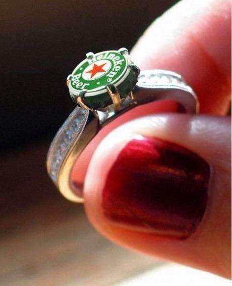 Van plan je meisje ten huwelijk te vragen? Doe het op een wel heel originele manier met deze Heineken verlovingsring! Goedkoper dan diamanten, maar wij betwijfelen of ze hier wel zo blij mee zal zijn. De kans dat ze volmondig JA zegt is toch wat kleiner...